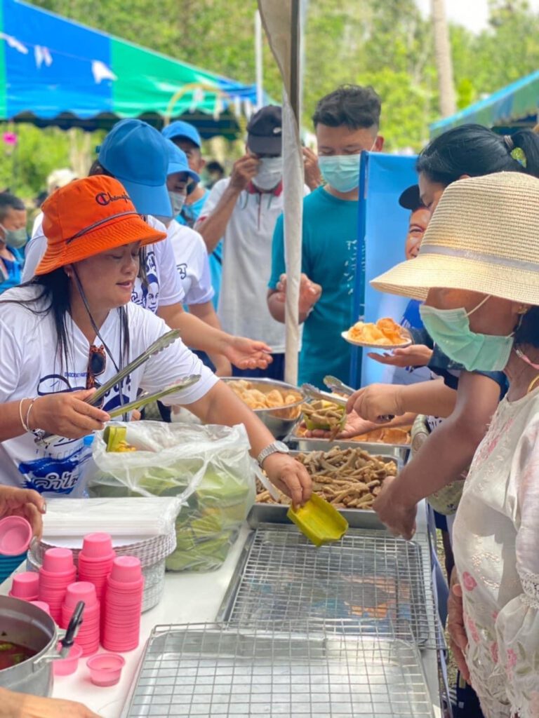 กิจกรรมแจกอาหาร น้ำ ขนม งานกฐินวัดนาป๋องเจริญธรรม วัดบ่อระกำ วัดทุ่งหวังใน สงขลา