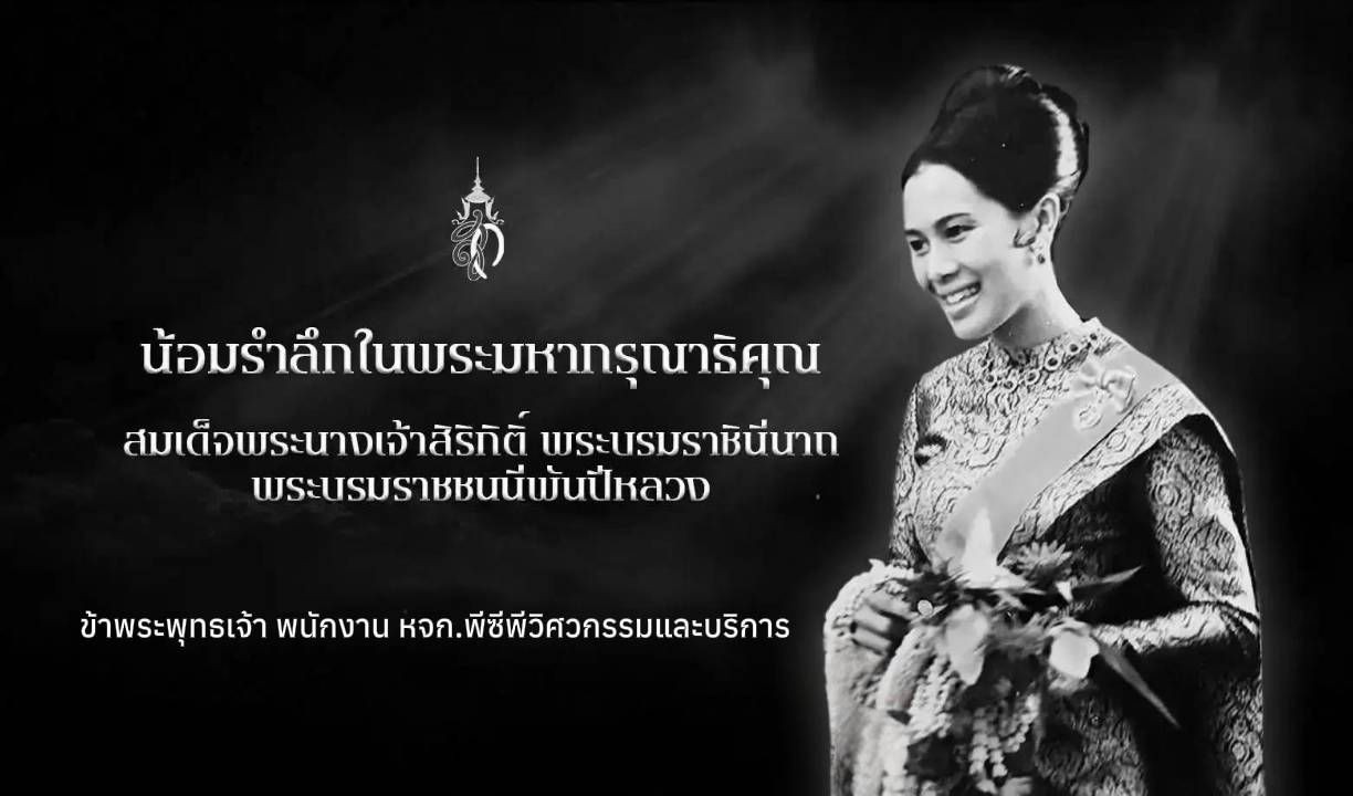 หจก.พีซีพีวิศวกรรมและบริการ น้อมถวายความอาลัยอย่างหาที่สุดมิได้ สมเด็จพระนางเจ้าสิริกิติ์ พระบรมราชินีนาถ พระบรมราชชนนีพันปีหลวง ด้วยสำนึกในพระมหากรุณาธิคุณ