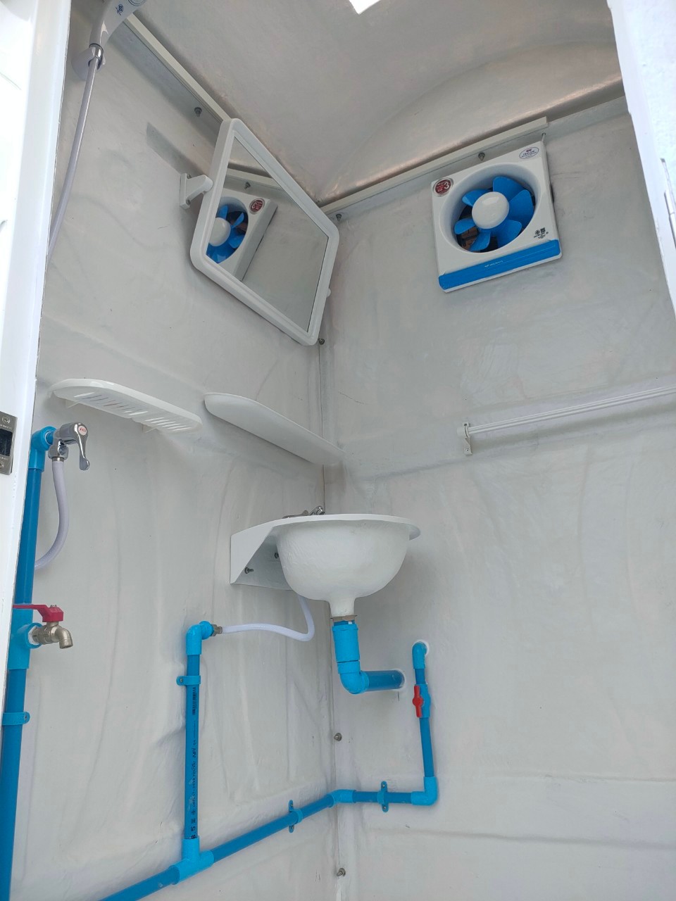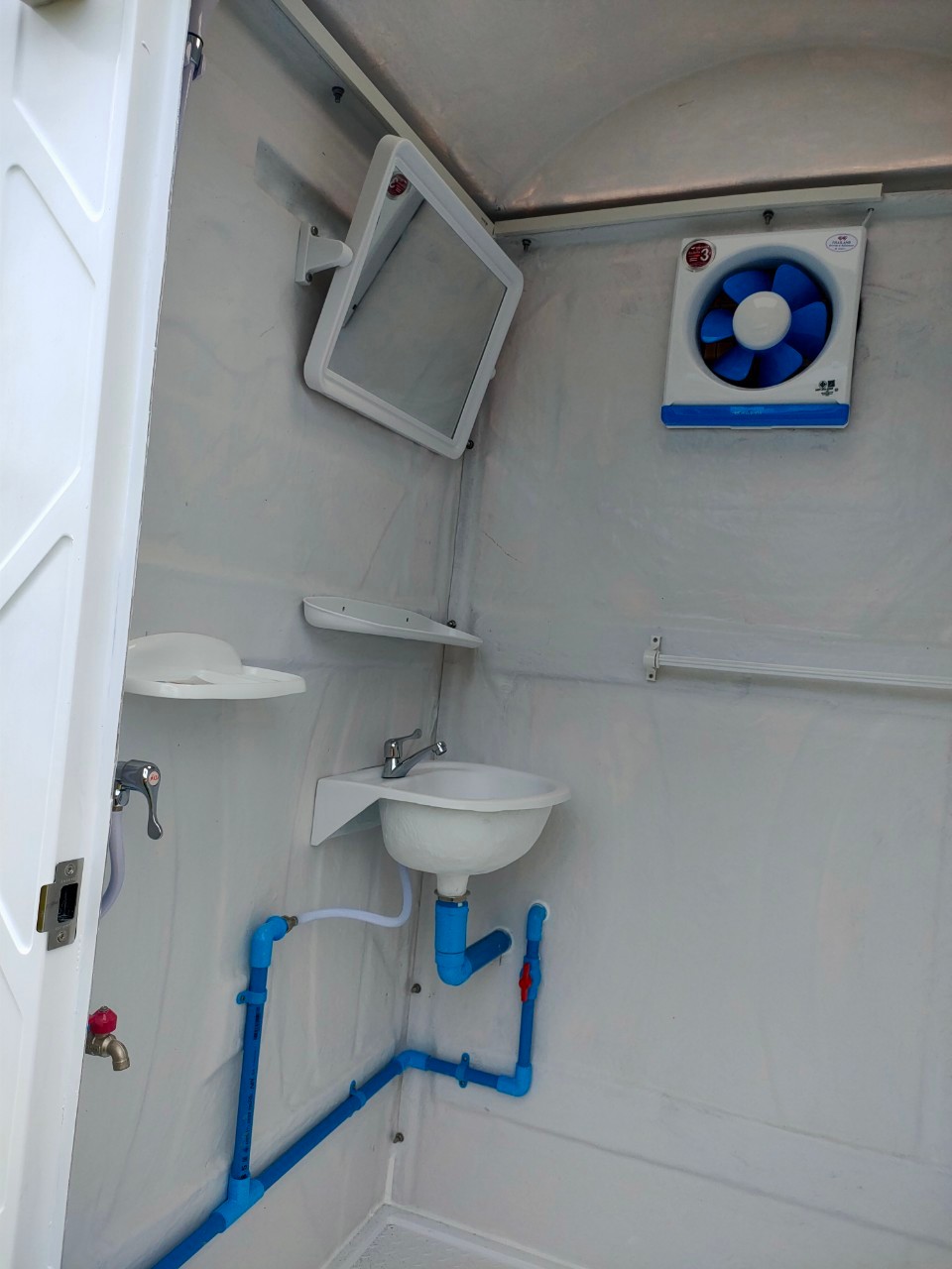 ตู้อาบน้ำเคลื่อนที่ มีอุปรณ์ครบครัน ทั้ง ฝักบัว อ่างล้างหน้า